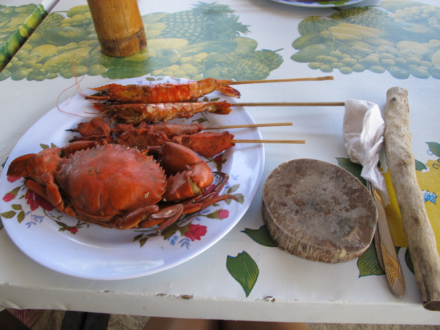啷噹!! 中餐是海鮮BBQ 右邊的棍子和砧板是拿來對付螃蟹用的